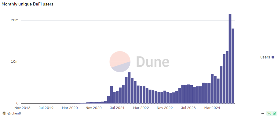 DeFi users rose above 21M in September and above 18M in October as crypto markets recovered. | Source: Dune Analytics