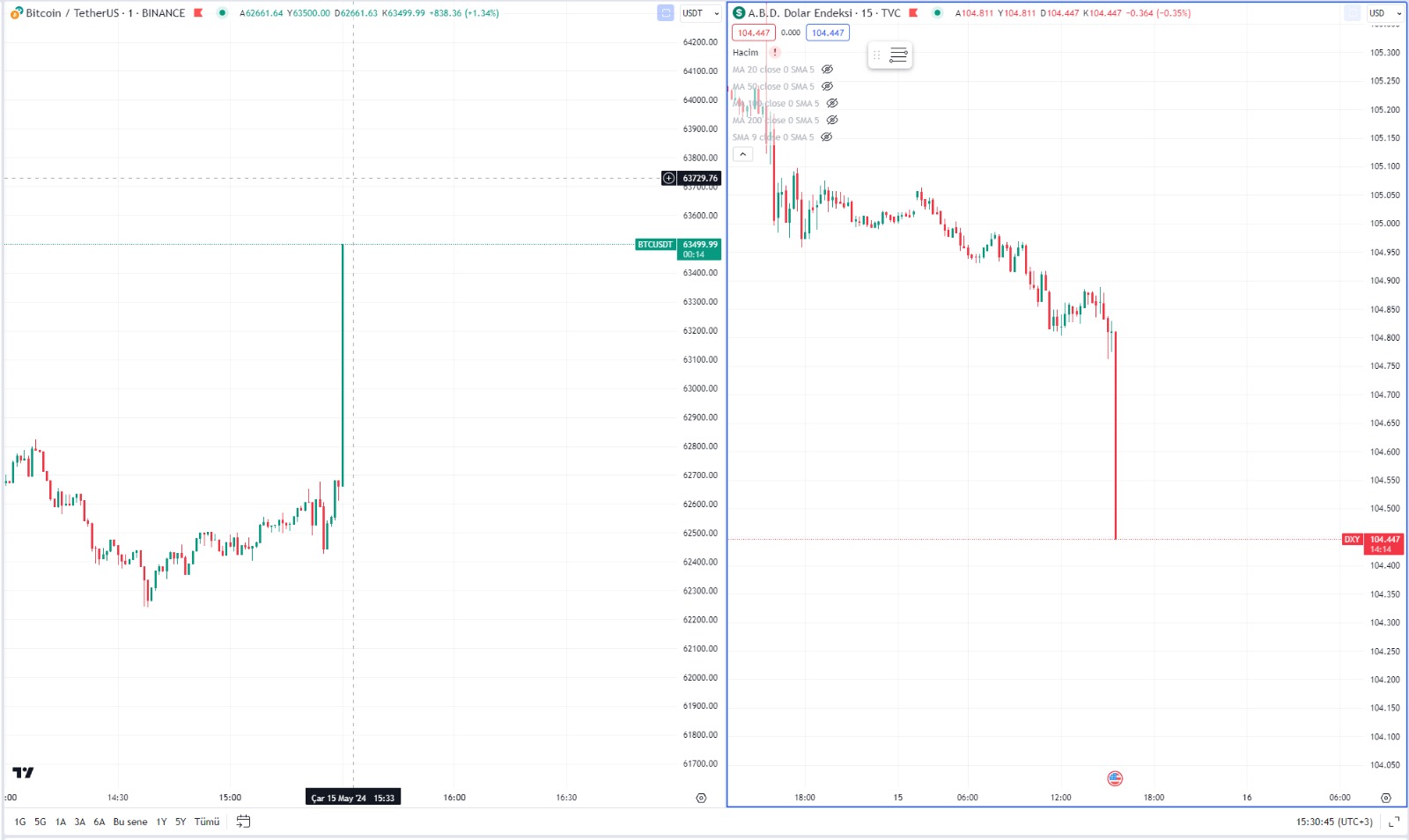 The first reaction of Bitcoin and Dollar (DXY) after the announced data was as follows.