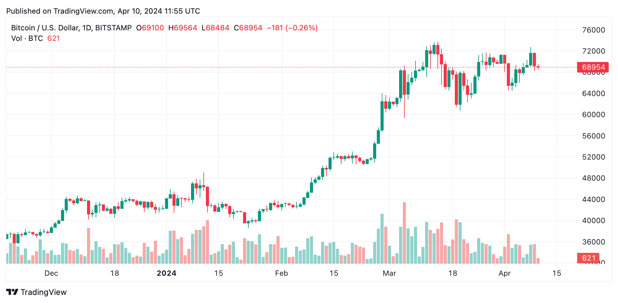 Bitcoin’s price movements on April 10, 2024, showcased a day of significant volatility, with the cryptocurrency’s value swinging between $68,207 and $70,917. Oscillators and moving averages paint a complex picture of neutrality and cautious selling signals, amidst a backdrop of a $1.35 trillion market capitalization. Bitcoin’s stance of neutrality and period of consolidation precede the release of the U.S. Consumer Price Index (CPI) report.