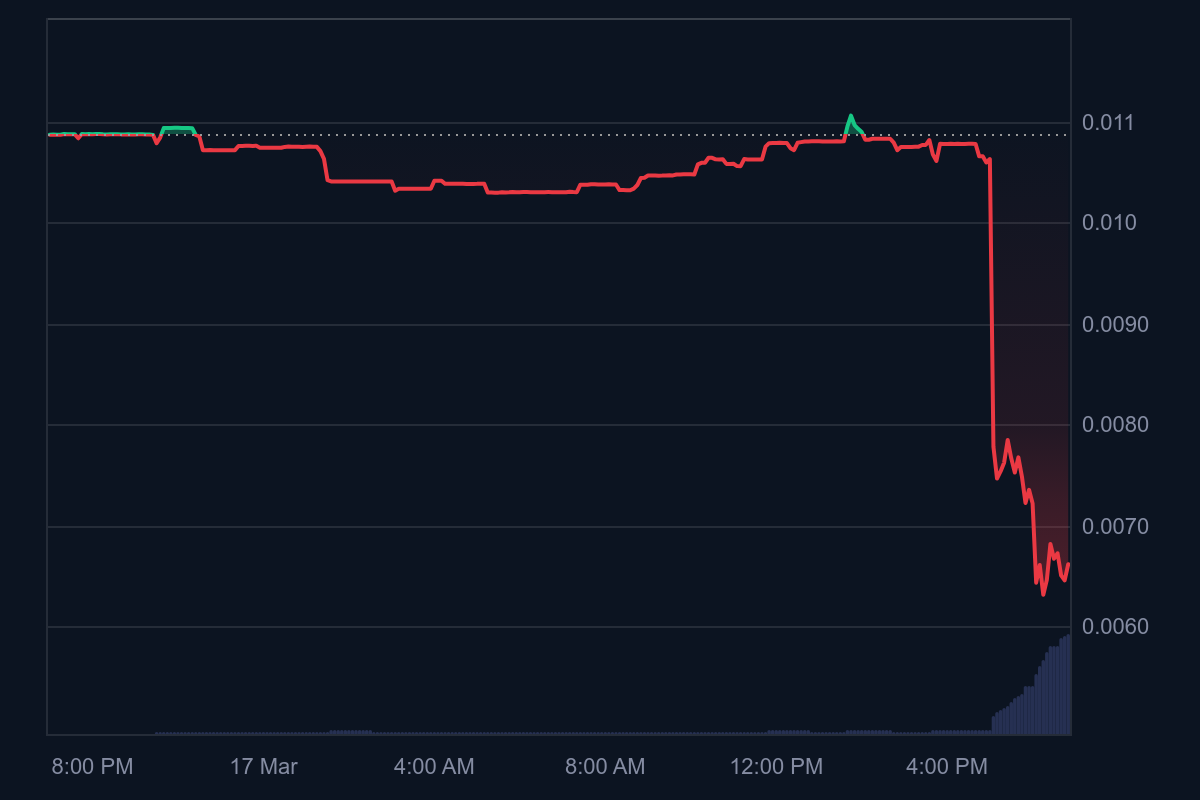 CoinMarketCap chart showing the IRL price drop following the delisting decision.