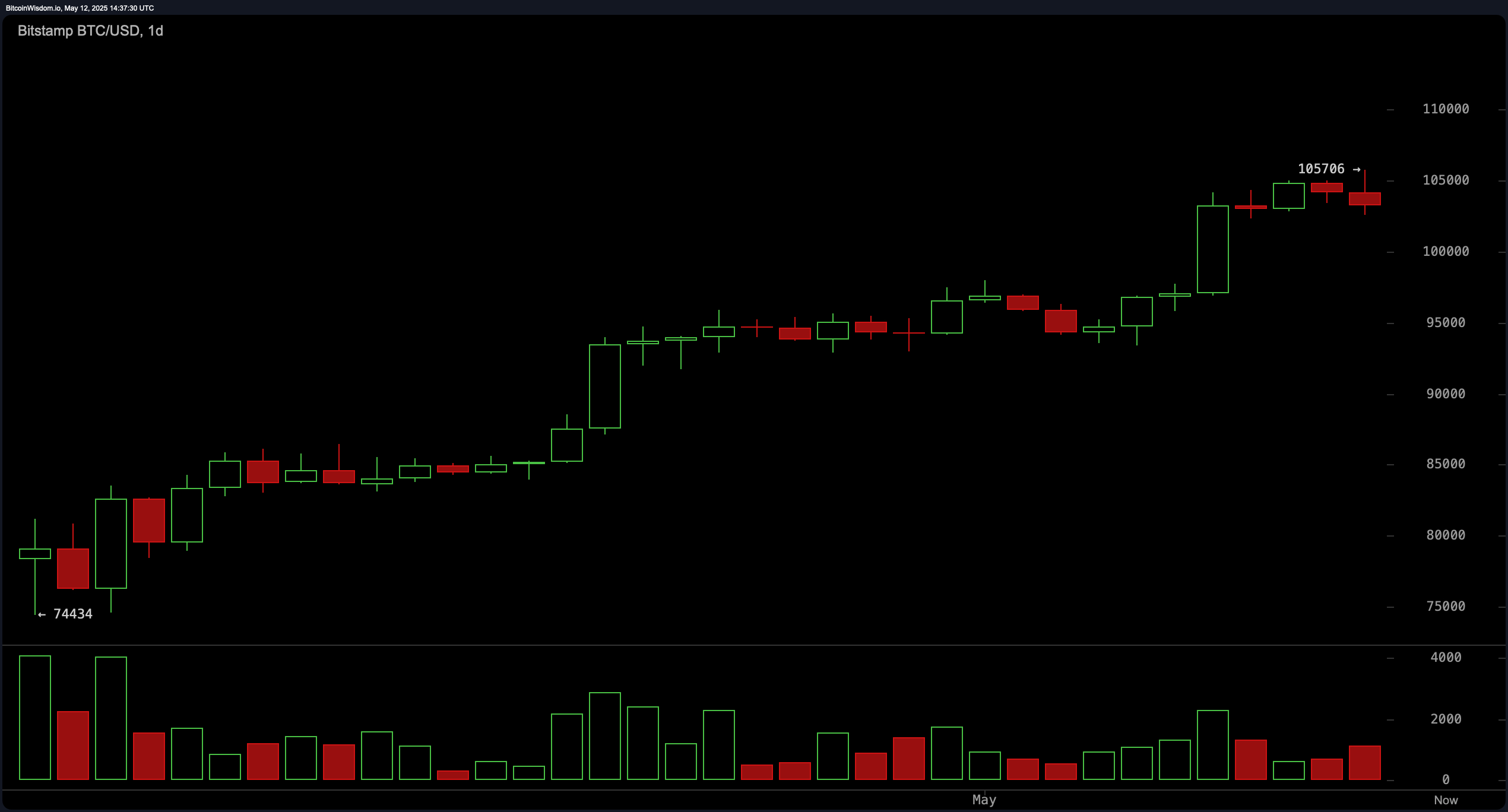 BTC/USD daily chart on May 12, 2025.