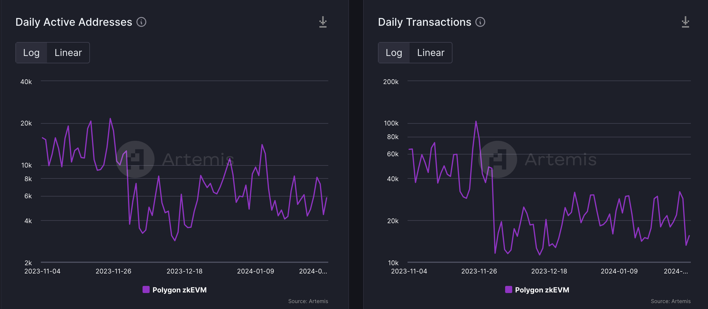 - Polygon zkEVM has failed to live up to the hype, and in recent weeks, its daily active addresses, transactions, and total value locked have been dipping progressively.