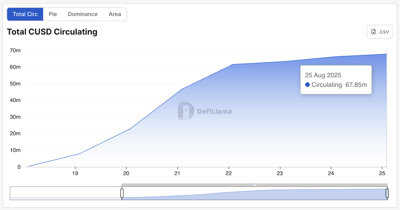Cap Labs’ new stablecoin cUSD has seen rapid adoption since launch, climbing to $67.85 million in circulation over the past week, according to DefiLlama.
