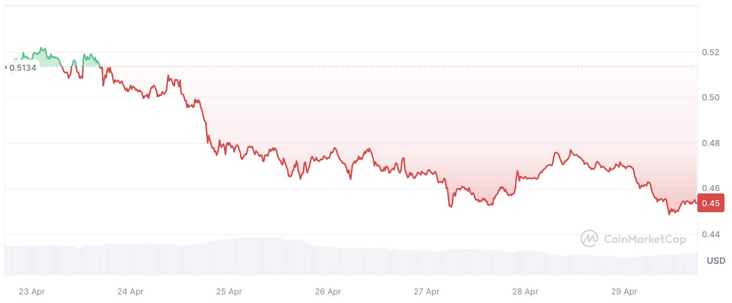 However, amid this surge in whale activity, the price of ADA has taken a hit. Experiencing a decline of over 7.8% in the past week alone, the Cardano token opened the new week with continued downward momentum, currently resting at $0.4543 per token.