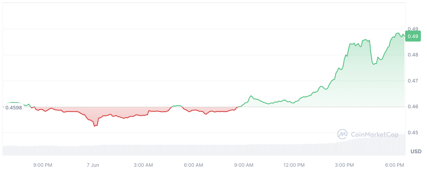This surge in trading activity comes at a time when the price of the Cardano token is also on the rise. Since the opening of the latest daily candle, ADA has seen a solid increase of over 6%, reaching $0.49 — a level unseen in the past 17 days.