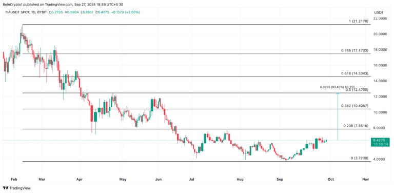 Celestia (TIA), the world’s first data-available blockchain network, has even before the beginning of the much anticipated broad market rally, secured crucial resistance levels on its price curve. According to our market data, TIA has surged by 30% in the last 30 days, and 5.7% in the last seven days to trade at $6.2. Interestingly, analysts expect an extension of the bullish run fueled by the reactions to the recent funding round that saw the project raising $100 million.
