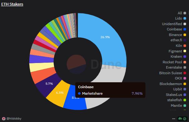 Coinbase is one of the biggest holders of staked Ethereum (ETH), potentially signaling its ability to offer staking ETFs. The exchange controls up to 8% of staked ETH.