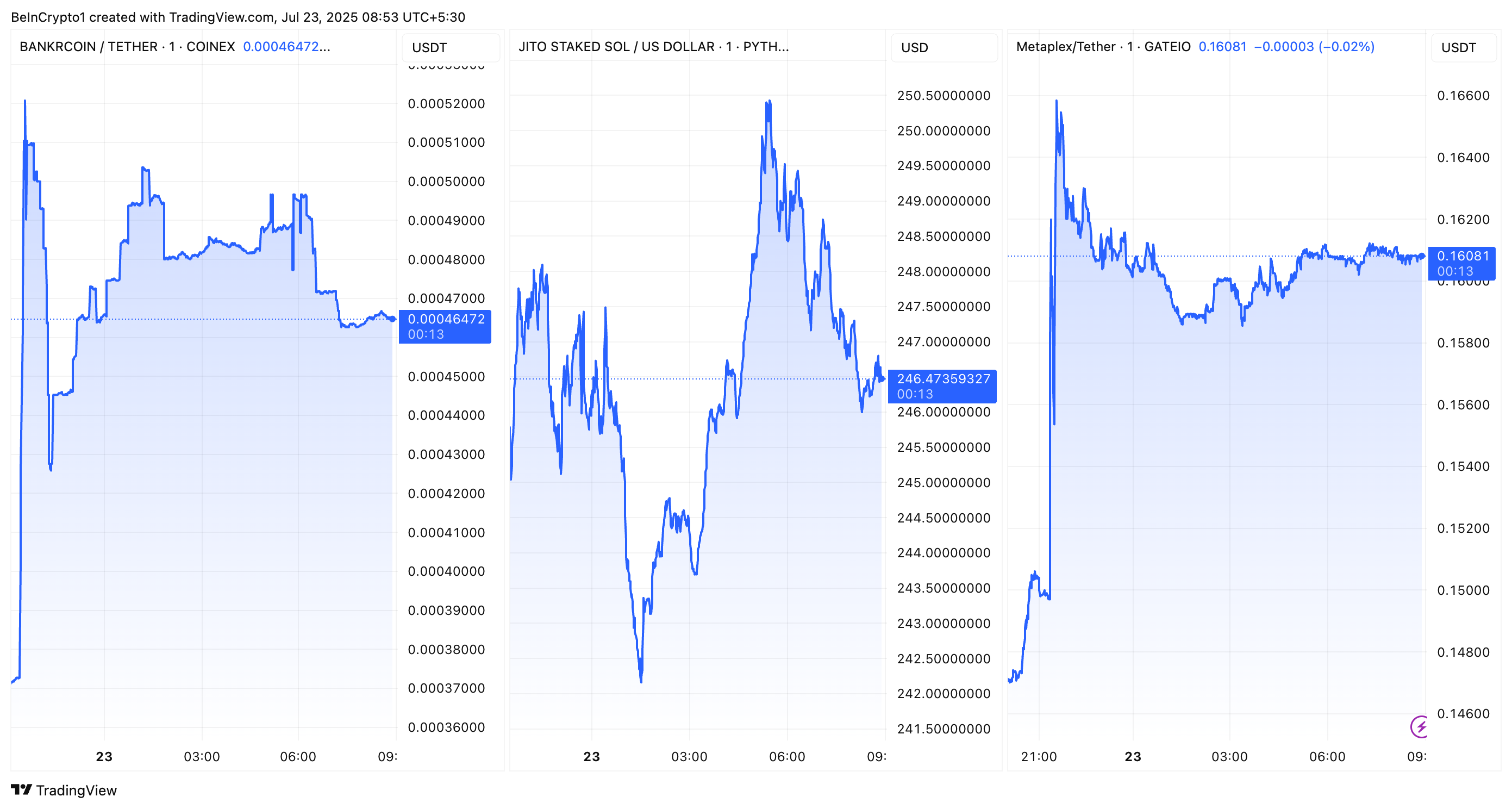 BNKR, JITOSOL, and MPLX Performance Post Coinbase Roadmap Addition. Source: TradingView