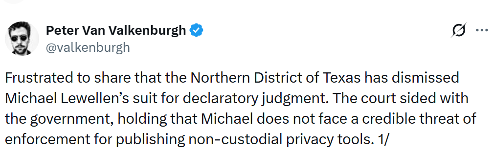 “So while I hope the court is right that non-custodial software developers are not at real risk, the Blanche memo is not enough to secure their rights. It is a vague enforcement signal, not a durable limit on government power,” Valkenburgh added.