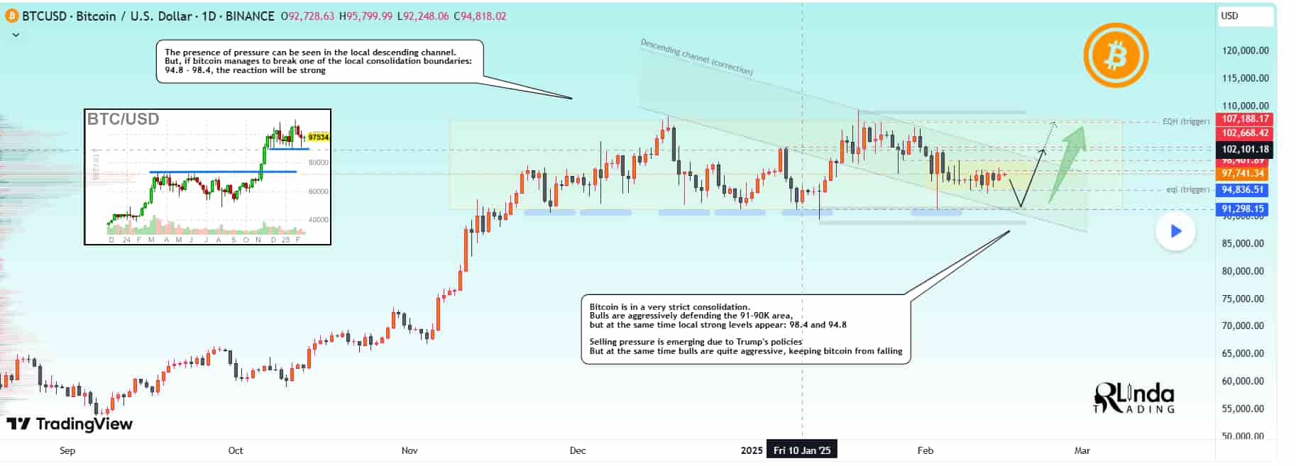 However, the broader technical outlook suggests that Bitcoin could first test liquidity at $91,000 and $90,000 before resuming an upward trajectory.