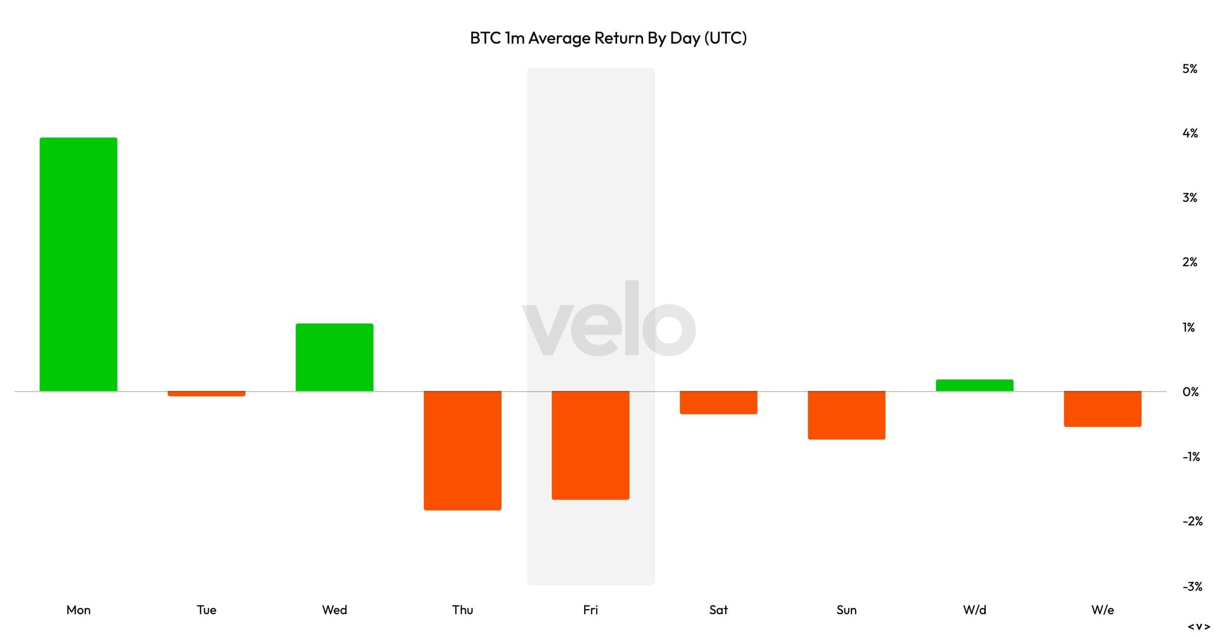 By Thursday and Friday, performance typically deteriorates further as investors reduce risk ahead of the weekend amid ongoing geopolitical uncertainty.