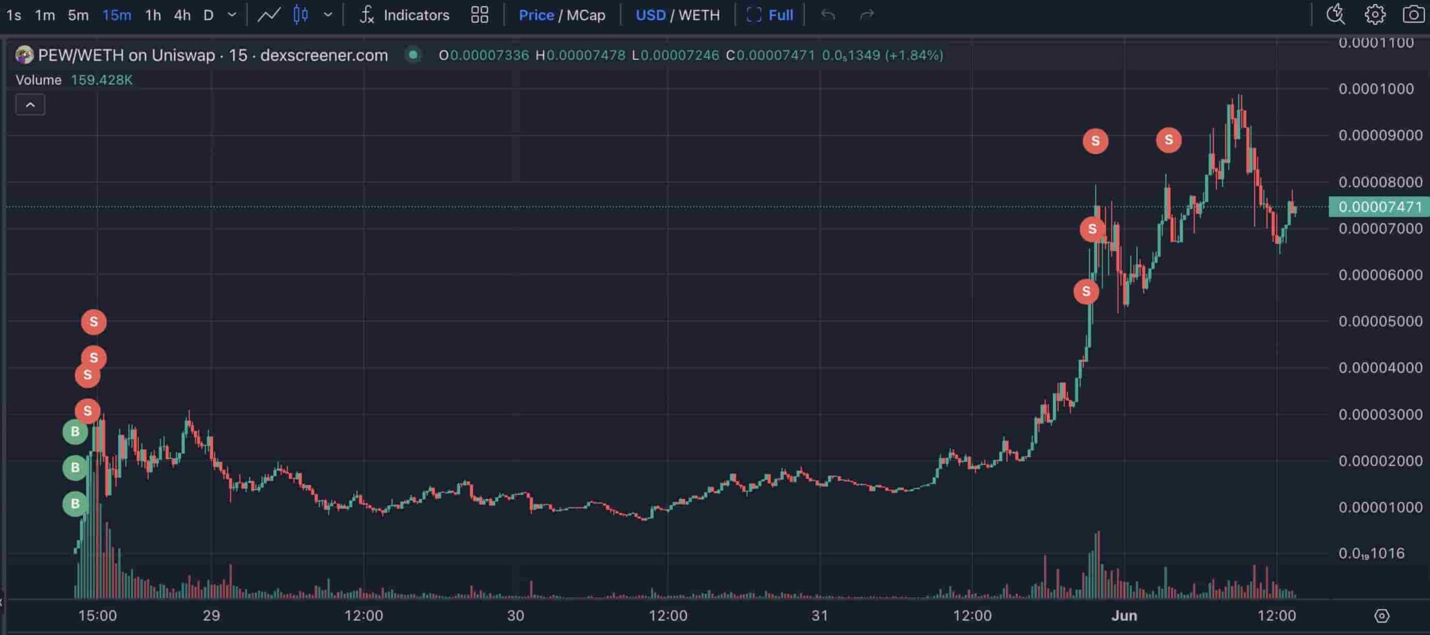 As developed, the address starting with ‘0x8EF73‘ bought 27.05 billion PEW with 3.2 ETH, worth $12,300. Lookonchain spotted and reported this crypto trader’s activity on May 31 in a post on X.