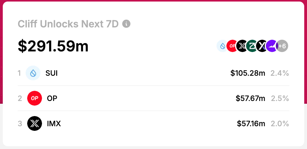For this week, traders and investors should closely monitor SUI, OP, and IMX, ideally avoiding big exposures as sales occur.