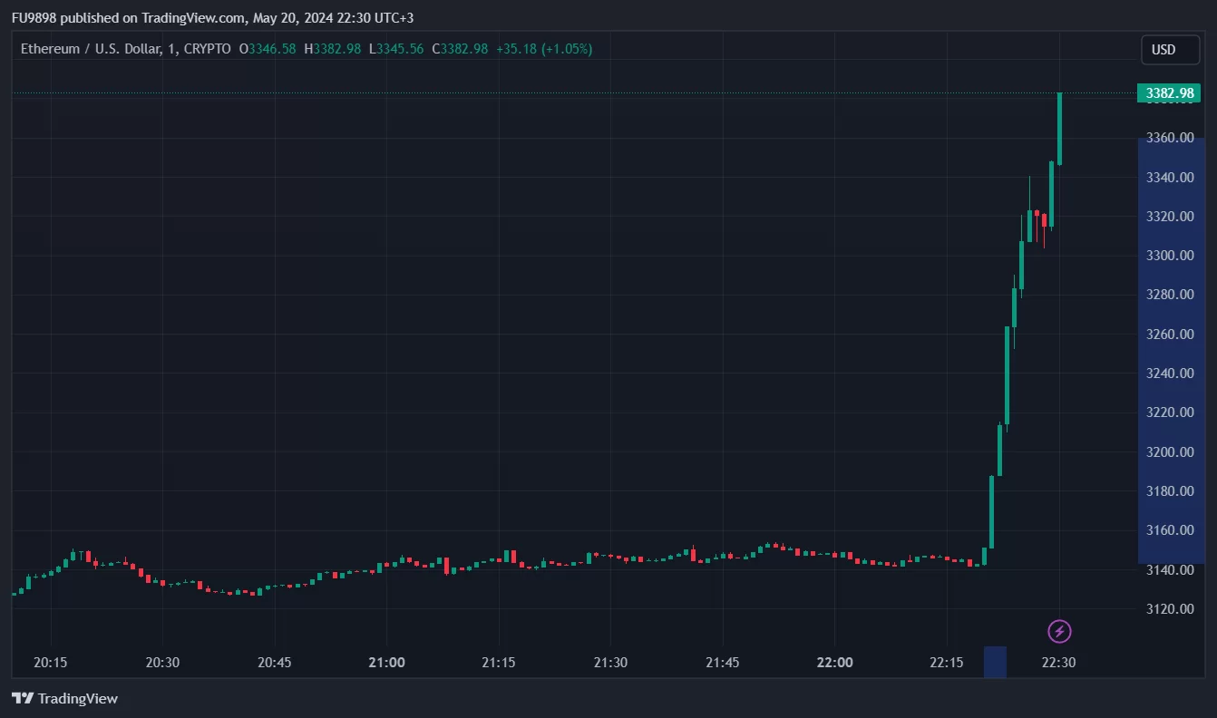 However, after this news, the Ethereum price experienced a surge and increased by approximately 7% within minutes.