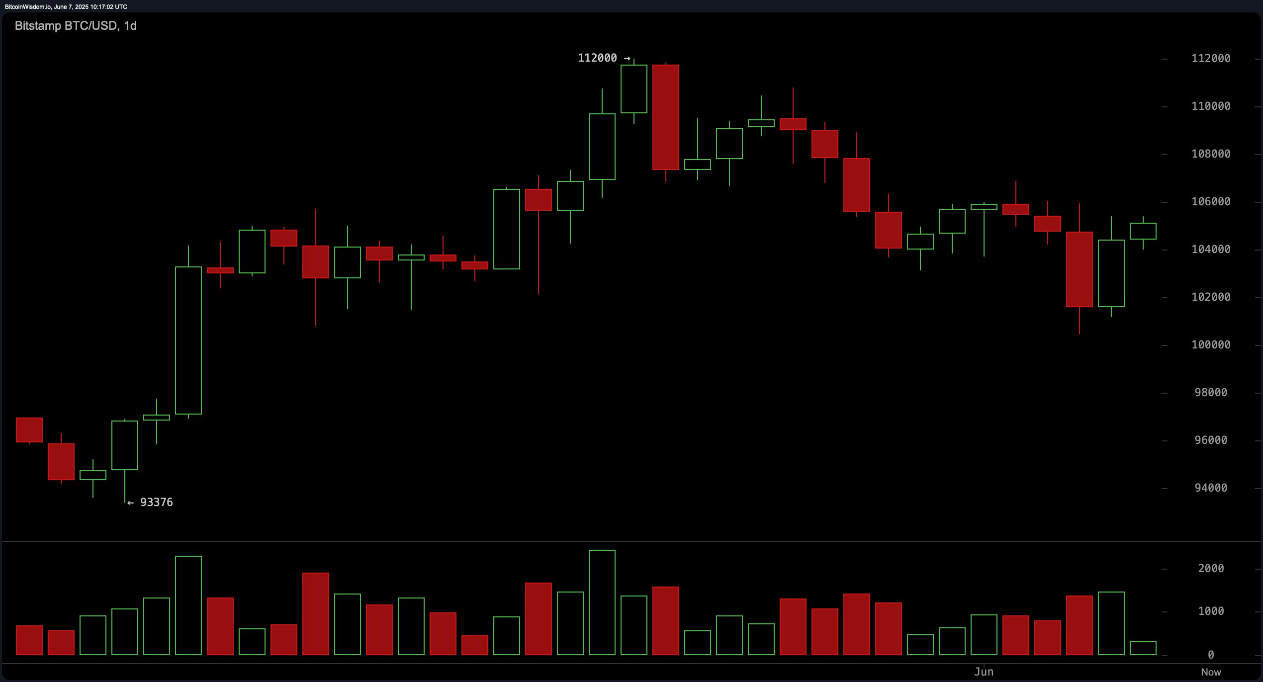 BTC/USD 1-day chart via Bitstamp on June 7, 2025.