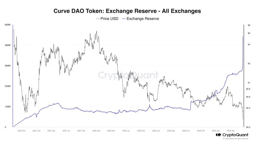 Curve DAO Token Exchange Reserves. Source: CryptoQuant