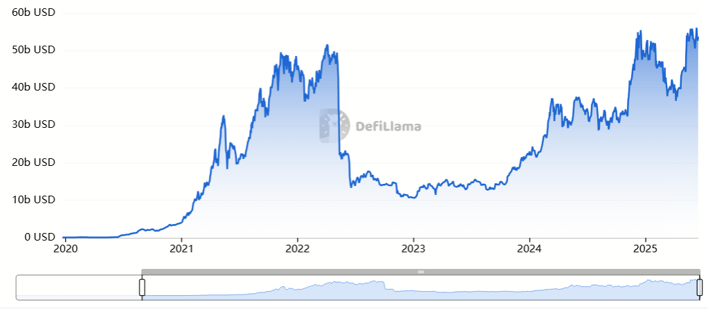 According to data from DefiLlama, as of June, the total value locked (TVL) in lending protocols surpassed $55 billion, the highest level in DeFi’s history.