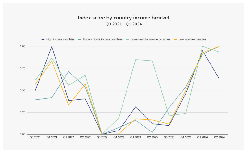 Meanwhile, the index shows that the trajectory of crypto activity in lower and lower-middle-income countries remained largely unchanged. This may be an indication that people in these regions are embracing crypto with the same enthusiasm as they did before the start of the so-called crypto winter.