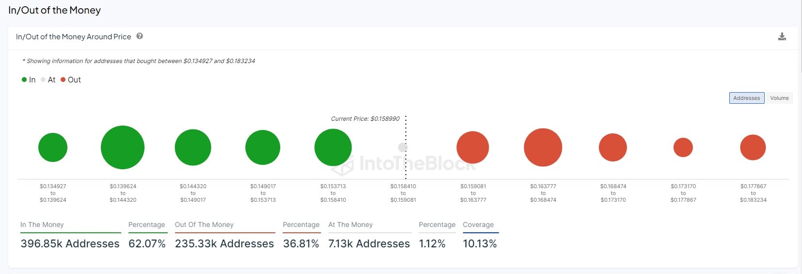 Addresses that are in loss are pegged at 841,370 or 13.34%, a figure that is comparatively lower than many of its rivals on the market. By comparison, Shiba Inu has over 34.9% of the total addresses in its network in losses.