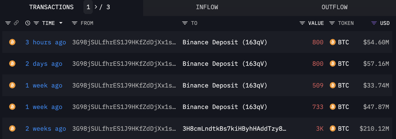 However, what drew particular attention was the revelation that despite the recent deposits, the whale still holds a substantial 13,665 BTC, equivalent to $928.6 million. These recent transactions represent only a fraction — approximately 10.48% — of the whale’s total Bitcoin holdings, which offers a different angle on this whale’s sentiment regarding market conjuncture.