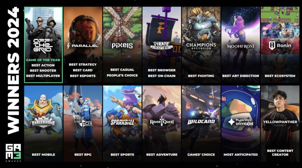 Other notable winners at the GAM3 Awards include Parallel, which claimed awards for Best Strategy Game, Best Card Game, and Best Esports Game. Pixels and Pirate Nation each took home two awards, further highlighting the diversity and innovation within the Web3 gaming space.
