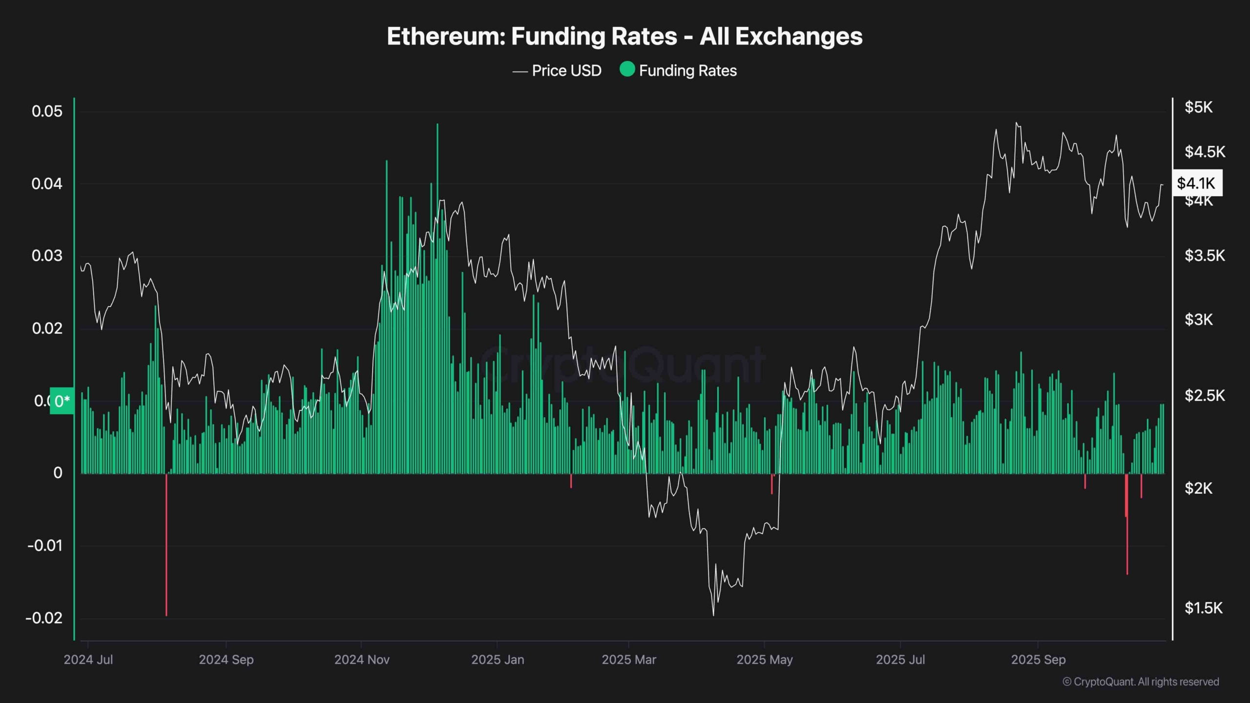 Sentiment across the Ethereum futures market is showing signs of growing optimism, but it has not yet reached a dangerous level. Funding rates have turned consistently positive after some significant negative prints, especially during the September and early October dip.