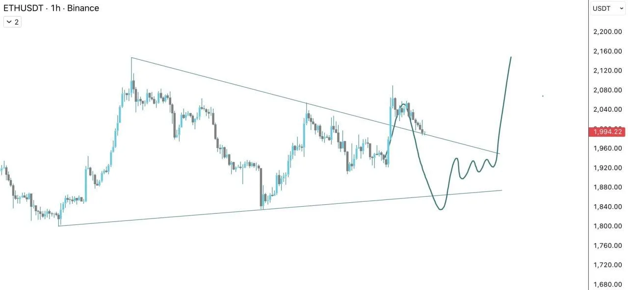 $ETH Retests Descending Trendline as Trader Flags Possible Dip Before Push Toward $2,222