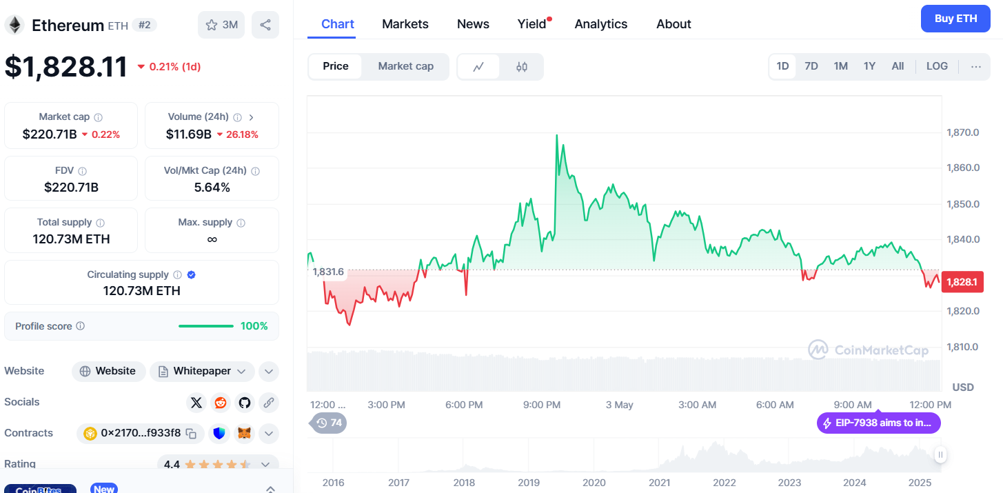 Ethereum recently tried to climb past $1,872 but was pushed back down. After that, the price fell to around $1,813, which is seen as a short-term support level. So far, this support has held, meaning the market might still try to move higher.