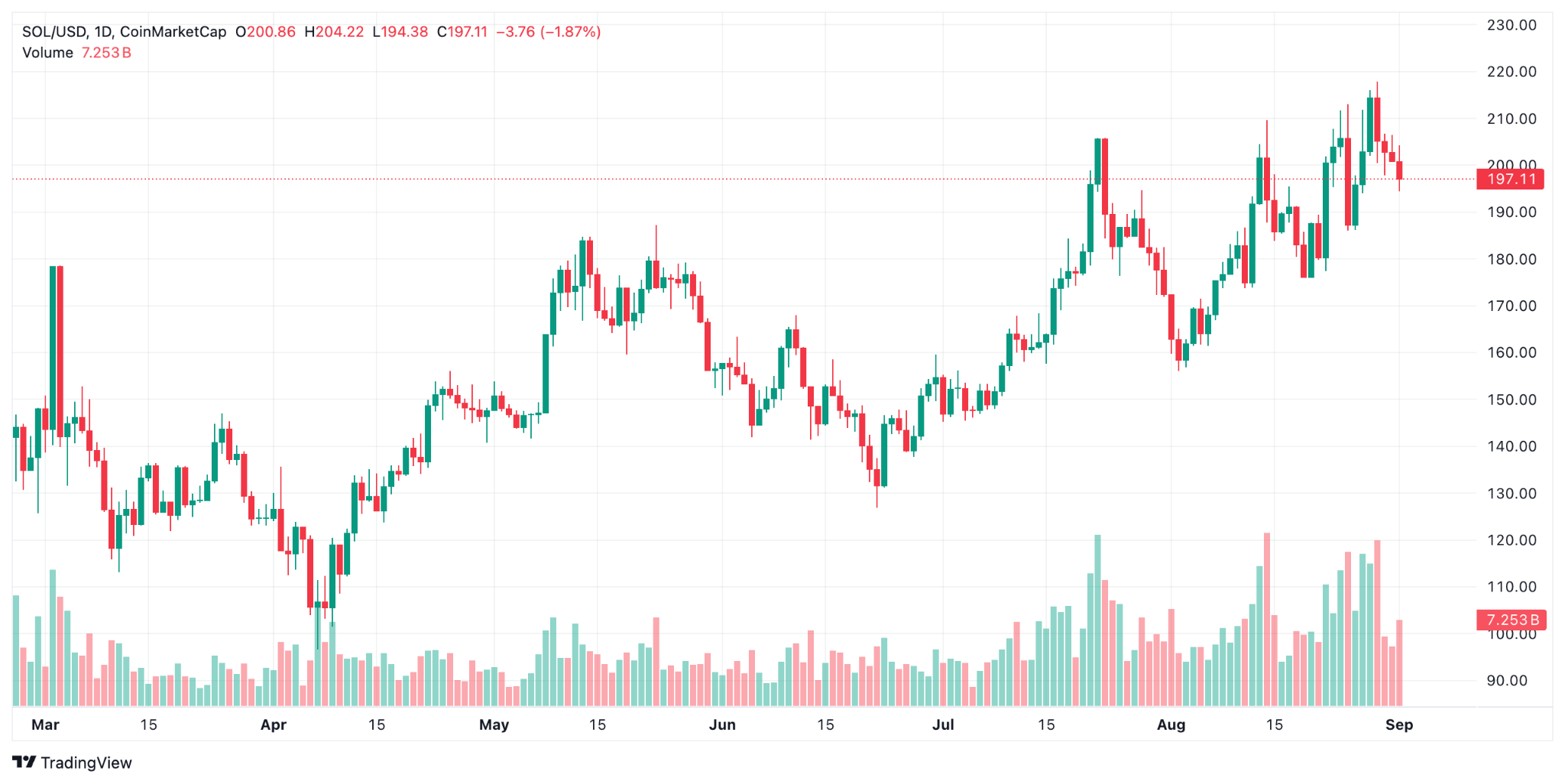 SOL trades between $196 and $207, up 41% this month. If support holds at $196, analysts expect a move toward $230–$252, with possible extensions to $300. Some Solana price predictions even stretch to $320 in bullish cases. The combination of upgrade buzz and ETF speculation has pushed traders to rotate capital from ETH into SOL for near-term upside.