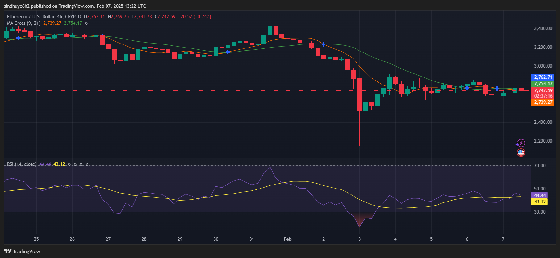Ethereum’s price is battling key resistance at $2,762.71 and $2,754.17, marked by the 9-day and 21-day moving averages. The nearest support level is at $2,739.27. A breakout above resistance could push ETH toward $2,800, while a drop below support may lead to $2,700 or lower.