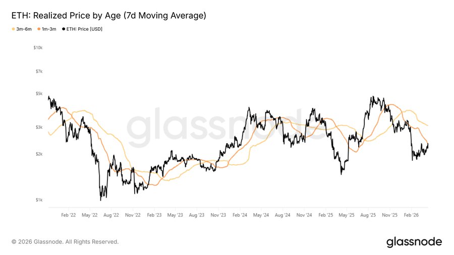 As displayed in the above graph, Ethereum has surged above the cost basis of the buyers from 1 to 3 months ago, but it still remains below the acquisition level of the 3 to 6 months old investors. “So far, this structure is consistent with a bear market relief rally, comparable to the bounces observed in Q3-Q4 2022, rather than a structural trend reversal,” noted Glassnode.