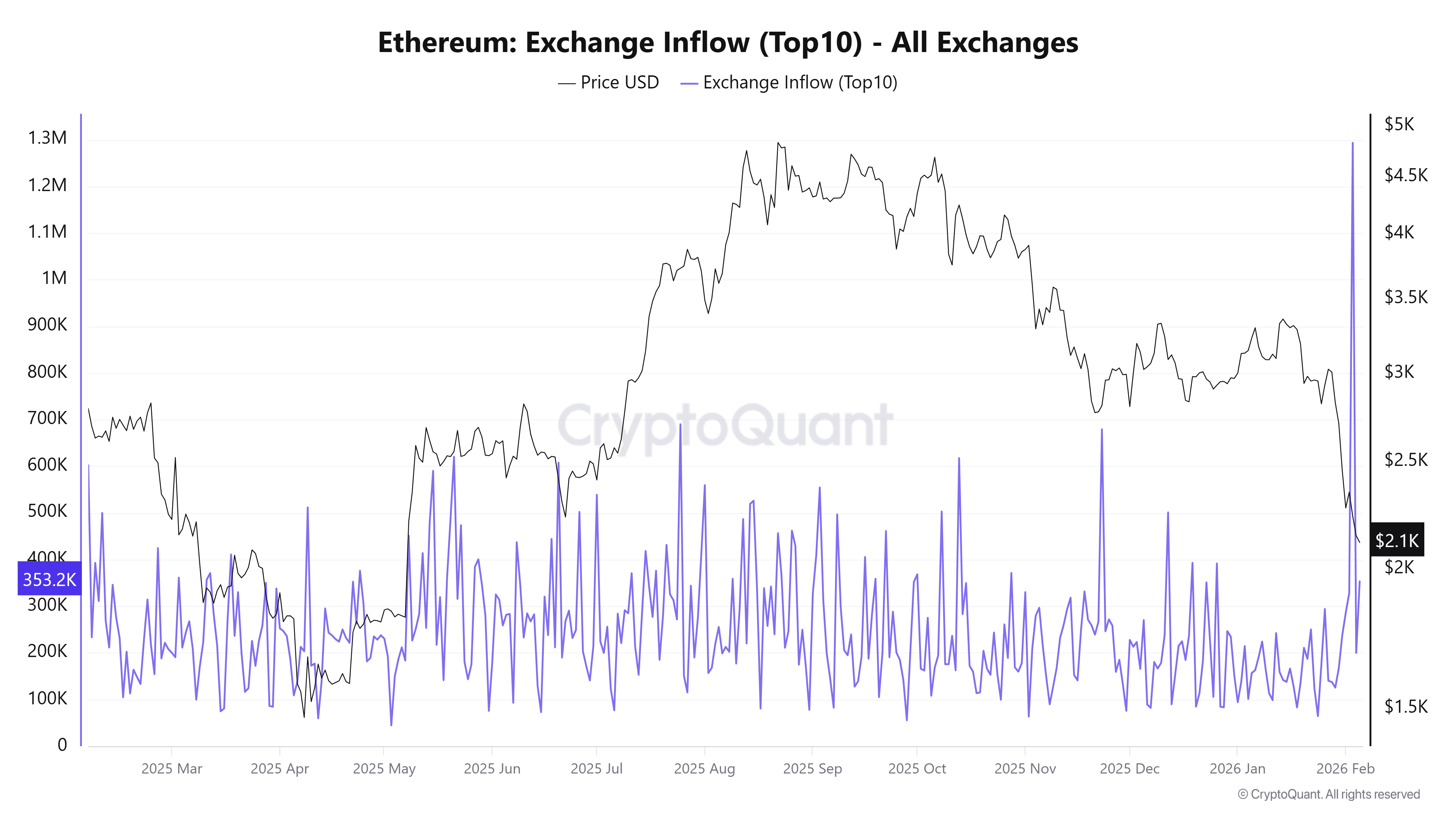 Ethereum Exchange Inflow (Top 10). Source: CryptoQuant.