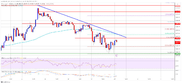 Ethereum price is now trading below $2,640 and the 100-hourly Simple Moving Average. On the upside, the price seems to be facing hurdles near the $2,625 level. There is also a key bearish trend line forming with resistance at $2,630 on the hourly chart of ETH/USD.