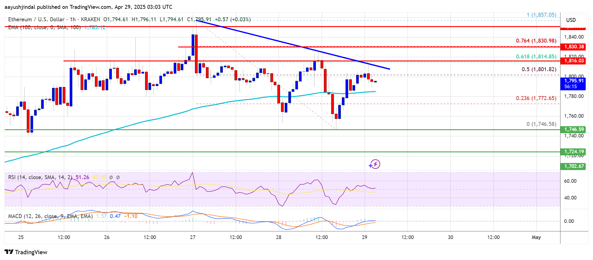 If Ethereum fails to clear the $1,820 resistance, it could start a fresh decline. Initial support on the downside is near the $1,770 level. The first major support sits near the $1,750 zone.