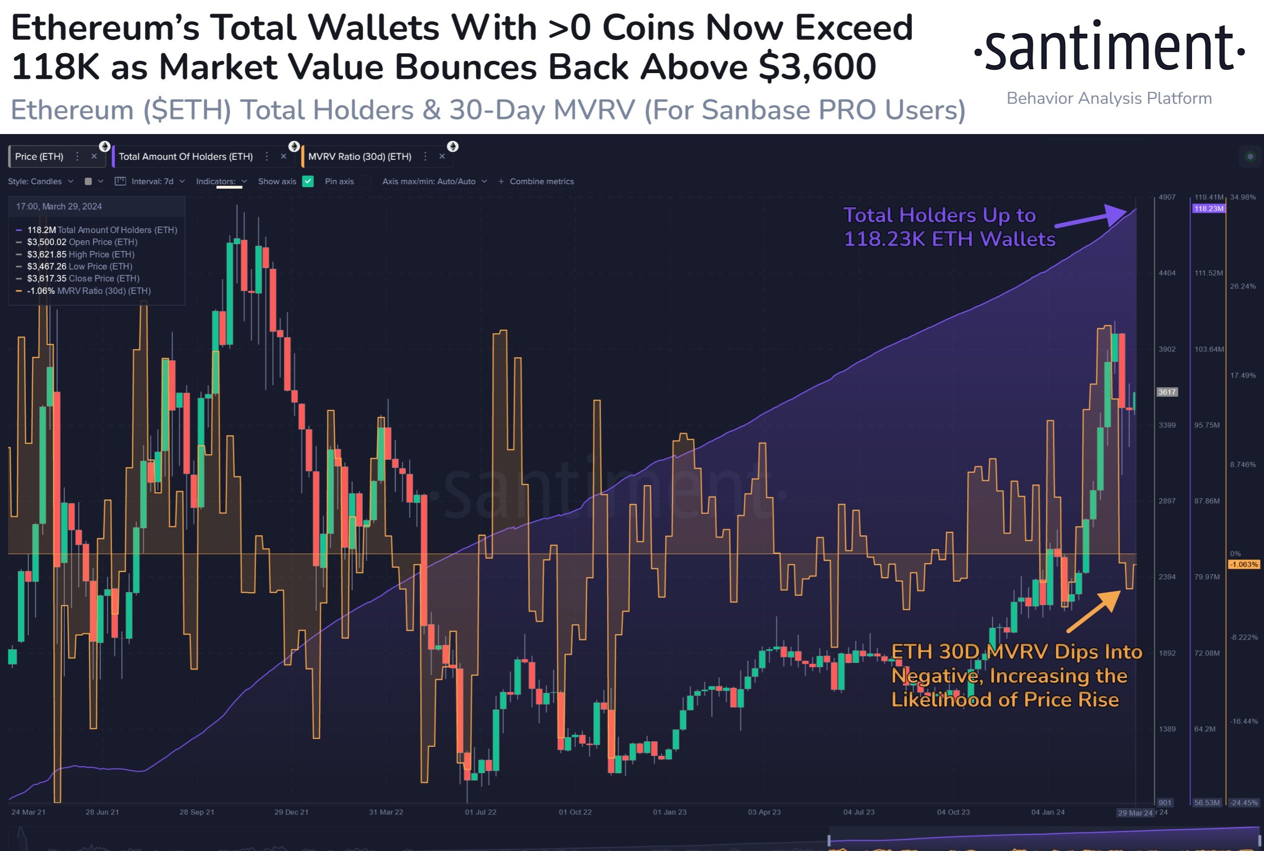 A notable development contributing to Ethereum’s bullish outlook is the surge in the number of ETH addresses holding coins, reaching an all-time high of 118,230. Additionally, the midterm market value to realized value (MVRV) ratio has displayed a subtle bullish signal, further bolstering investor confidence.