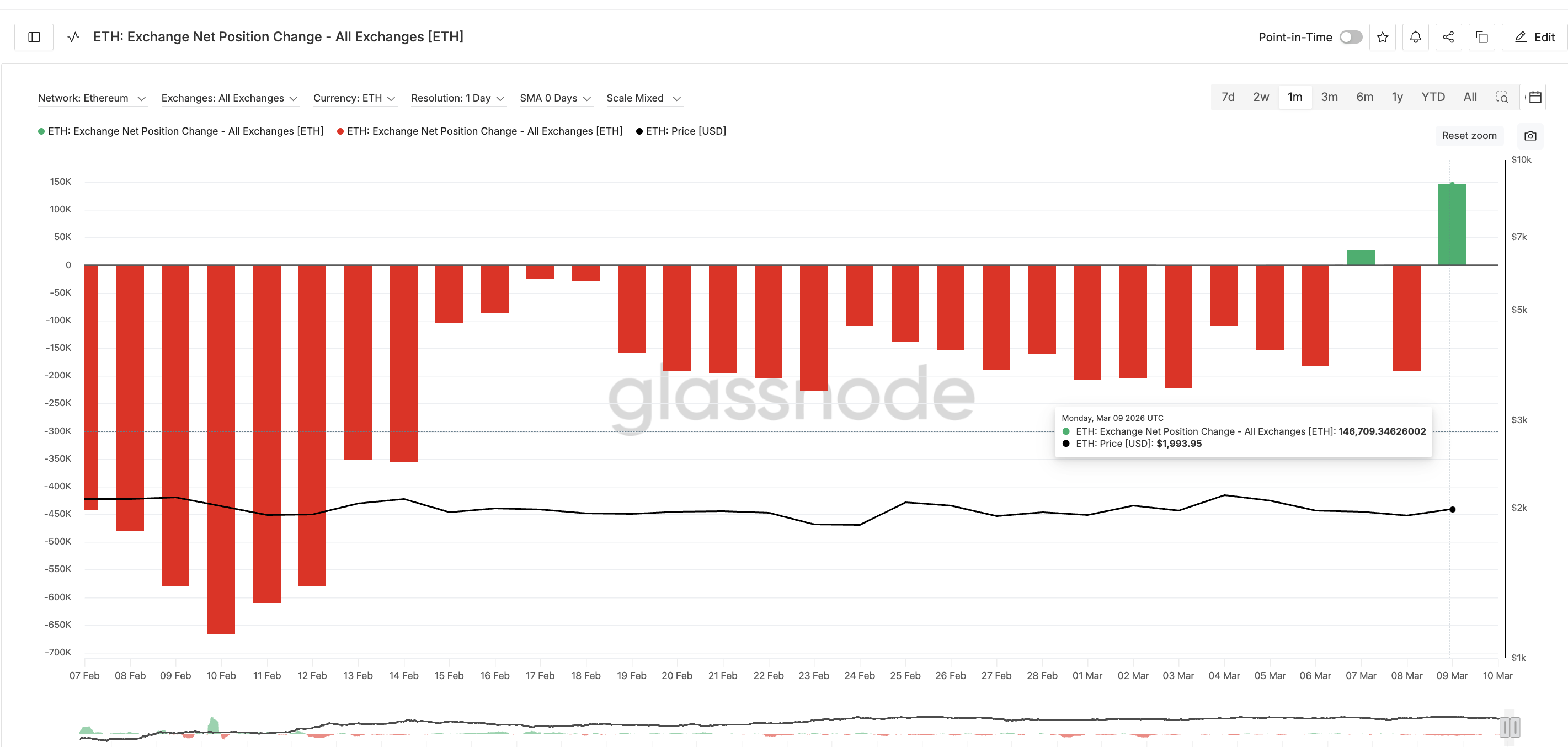 $ETH Exchange Flow: Glassnode