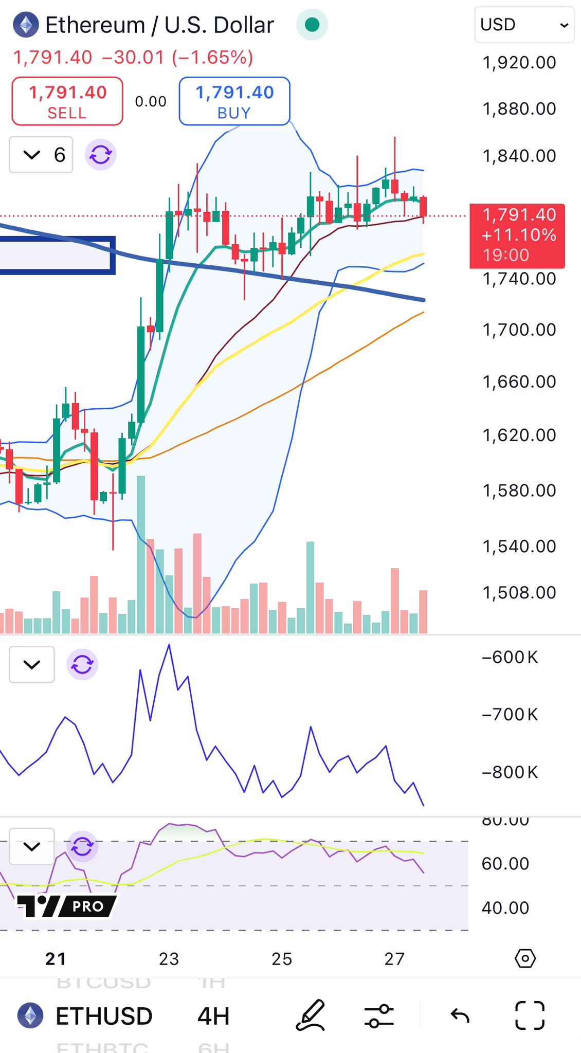 Ched’s critical insights point out that Ethereum is forming a 4-hour bearish divergence on the On-Balance Volume (OBV) indicator. This, combined with the appearance of an upper shadow on local structure, signals weakening buying pressure. According to Cheds, a short position could be triggered if Ethereum loses the $1,750 support zone, which would confirm a breakdown from the current consolidation pattern.