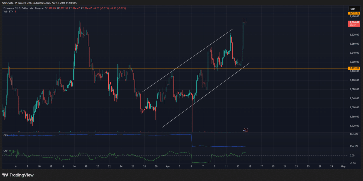 Within this context, Ethereum rose nearly 10% in the last 24 hours at writing time, after months of sideways movement following a sustained downtrend.