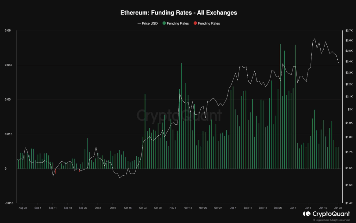 Ether is currently experiencing a correction within its upward trend, with bulls aiming to maintain the price above the key support level of $2,300. ETH price witnessed a robust rejection in the last 24 hours as bears defended the $2.4K level strongly. As of writing, ETH price trades at $2,306, declining over 4.2% from yesterday’s rate.