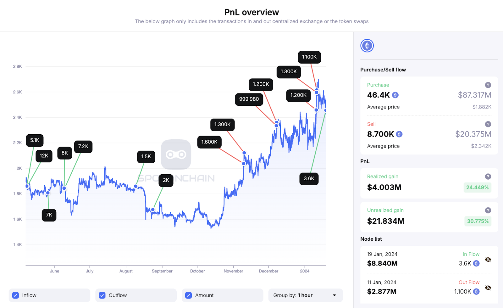 As a matter of fact, the whale had been accumulating throughout 2023 lows before the price started rallying. Spotonchain shared that they withdrew 42,800 ETH from Binance at an average cost of $1,834 from May 8, 2023 to August 24, 2023.