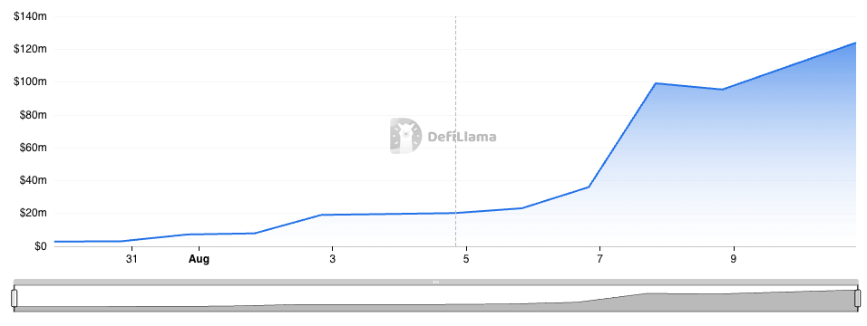 Decentralized exchange (DEX) Etherex crossed the $120 million total-value locked (TVL) mark today after launching its token on Aug. 6.