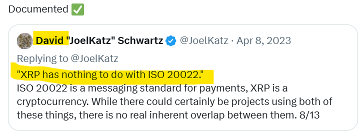 For context, ISO 20022 is a global messaging standard for payments, while XRP is a crypto asset. While this clarification has come up multiple times, some members of the XRP community continue to insist on XRP’s relationship with ISO 20022.