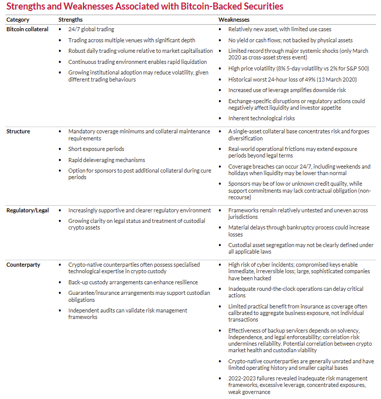 The strengths and weaknesses of $BTC-backed securities. Source: Fitch Ratings