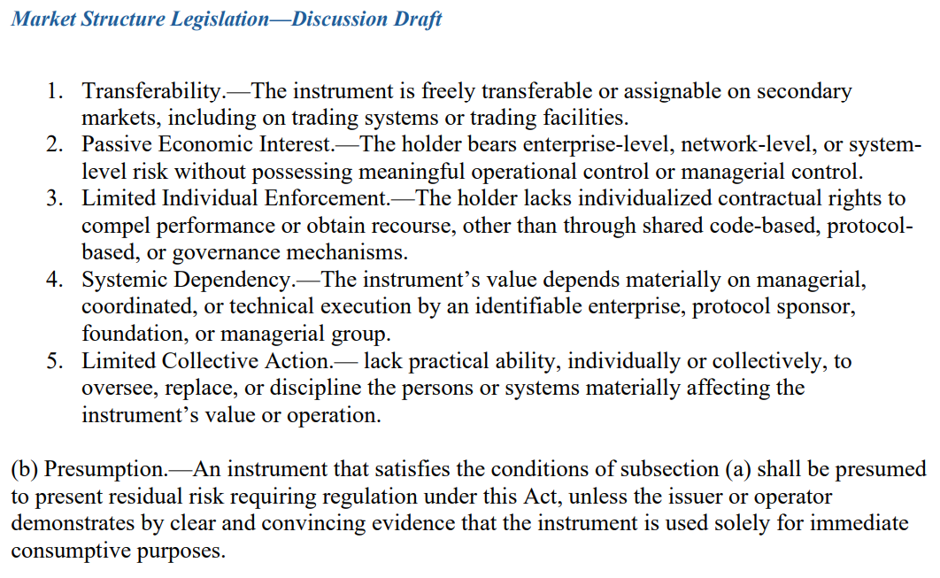 The draft also calls for risk-based jurisdictions for the SEC and the CFTC, federal preemptions for inconsistent state law application and safe harbor provisions to support innovation.