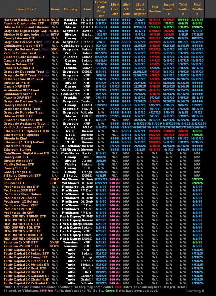 The first key deadline round falls on May 30th – the same day FTX payments begin. However, analysts widely expect the SEC will again delay approvals, pushing major decisions possibly to August pending more regulatory clarity.