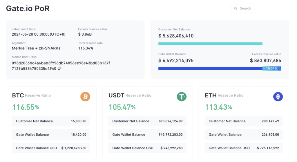 Gate.io’s May 2024 reserves report is available on its PoR portal. Users can independently verify that their accounts and deposits were reflected and access other related information.