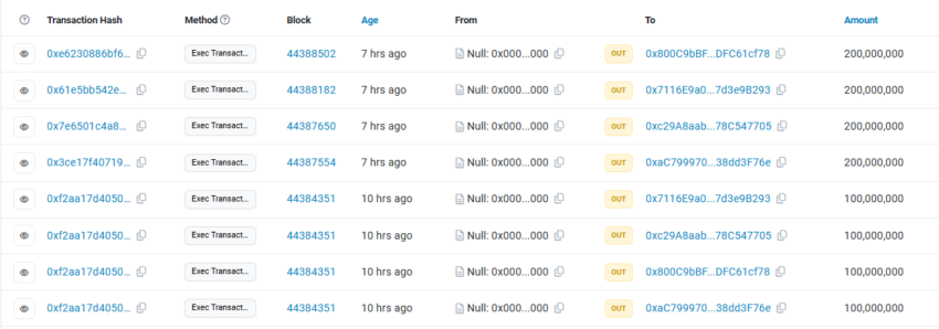 Gifto’s GFT Transactions. Source: bscscan