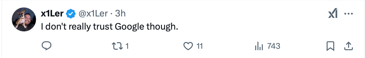 Meanwhile, some individuals welcomed Google’s initiative. “Google wants a piece of the action, this is huge,” one person said. Another wrote, “This can speed up adoption a lot. That is the thing we need.” As Google explores digital identity integration, industry observers remain optimistic, anticipating transformative shifts in decentralized finance and authentication practices while prioritizing user security and privacy and want nothing to do with it.