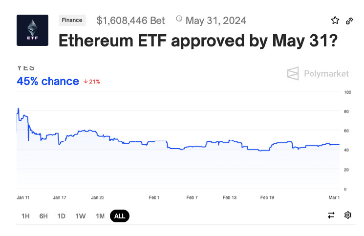 Wagers on Ethereum ETF Approval by May 31 | Source: Polymarket