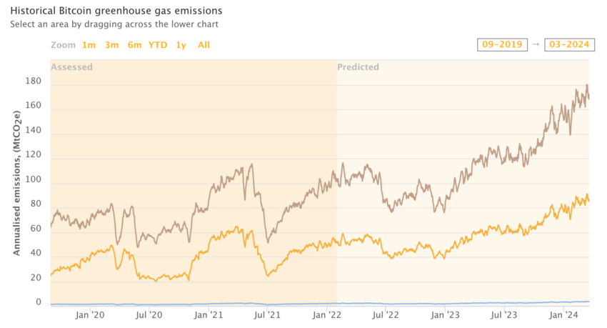 Historical Bitcoin Greenhouse Gas Emissions. Source: University of Cambridge